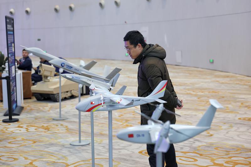 現(xiàn)場(chǎng)嘉賓觀看展示的無人機(jī)模型。新京報(bào)記者 陶冉 攝