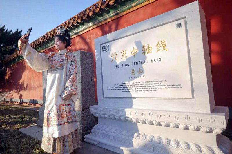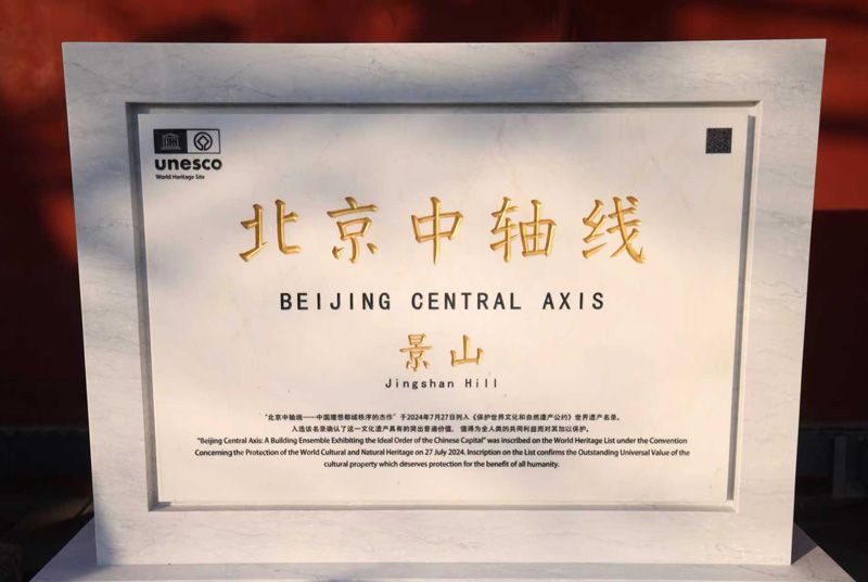 北京中軸線世界遺產(chǎn)碑(景山)亮相
