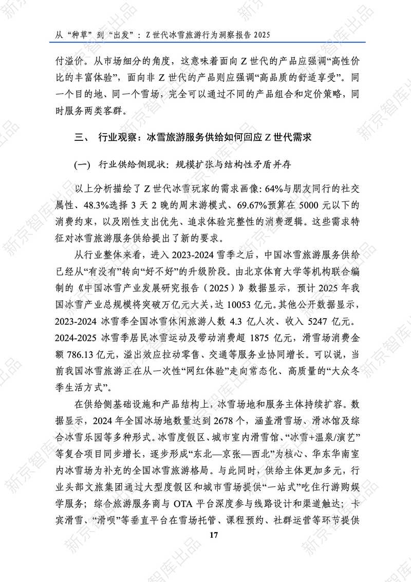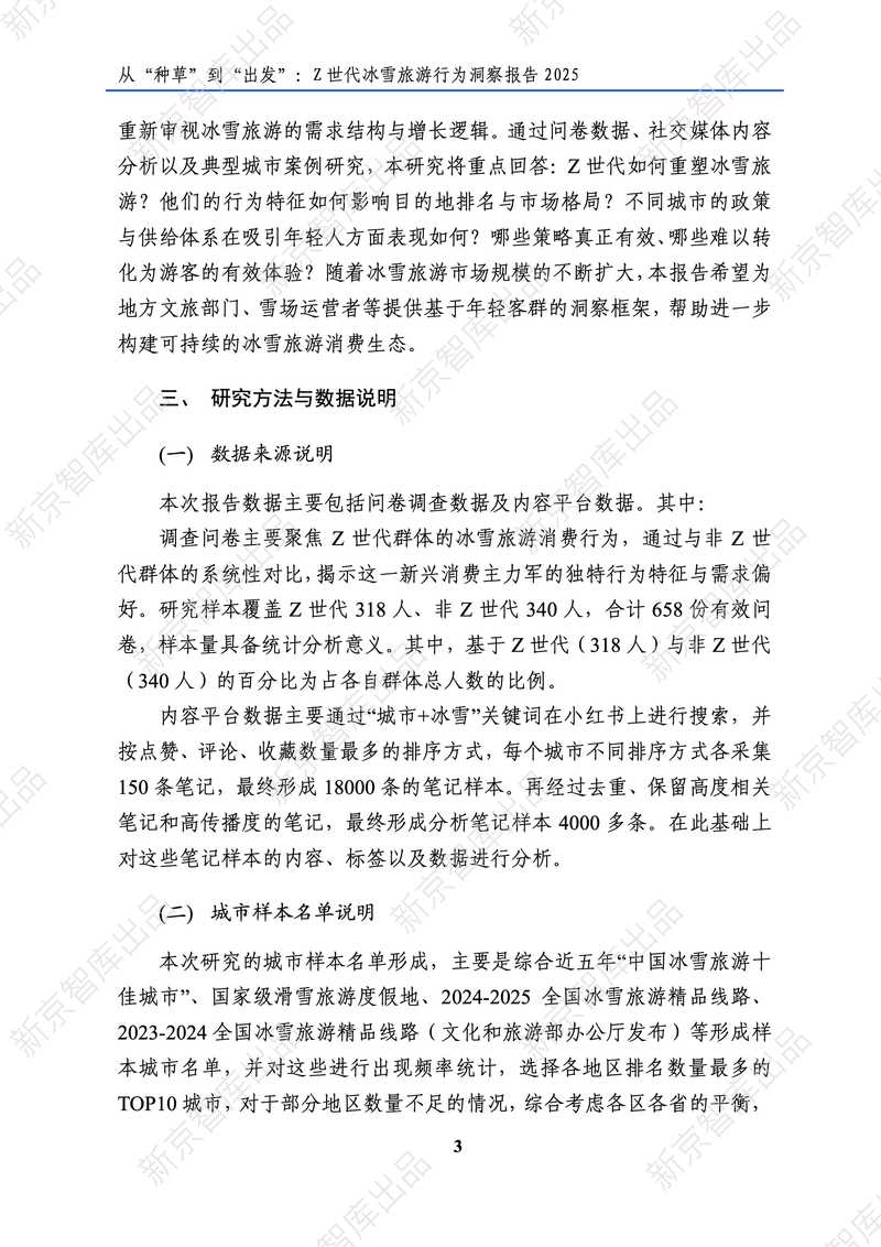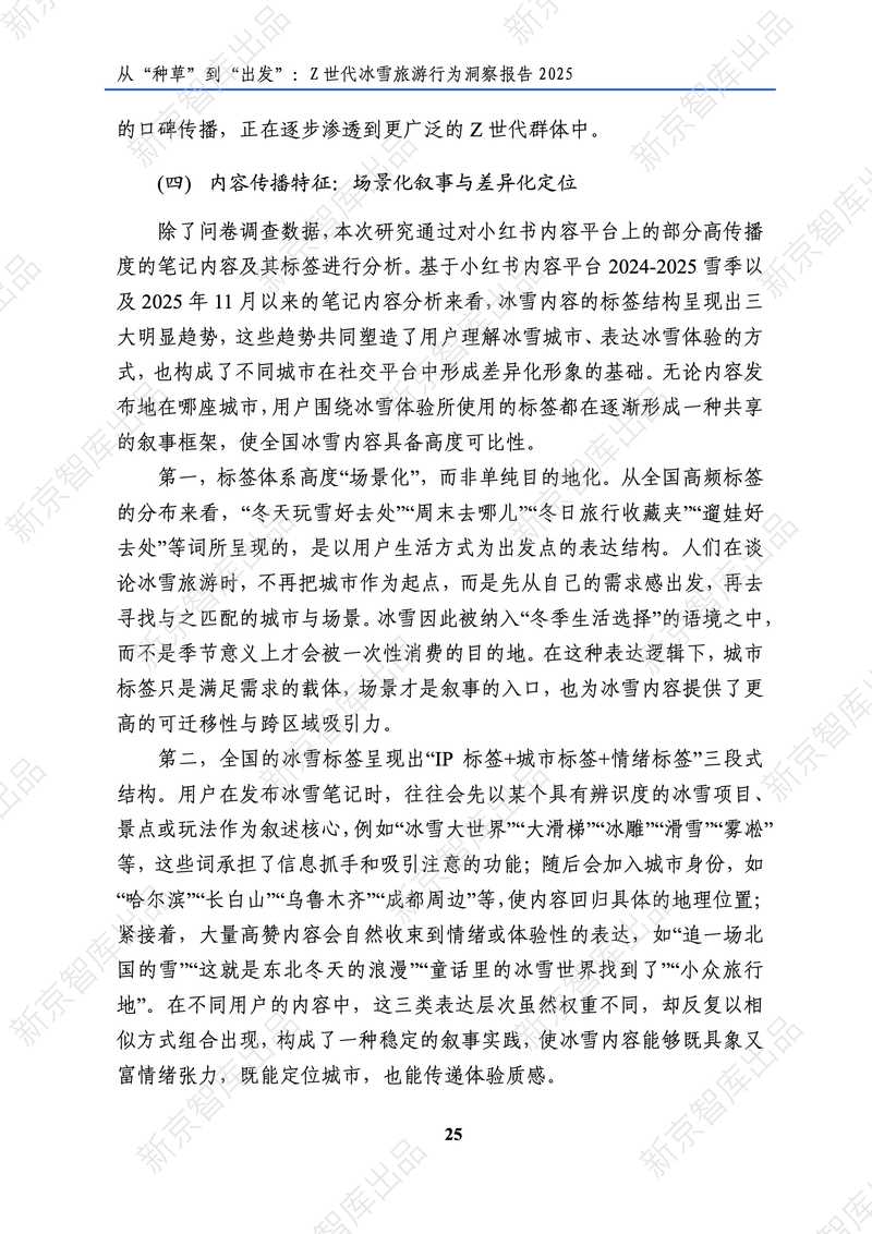 12月17日,新京智庫發(fā)布《從“種草”到“出發(fā)”:Z世代冰雪旅游行為洞察報告2025》。本次報告通過658份有效問卷,以及4000多條小紅書平臺上高傳播的筆記及其標簽進行分析。報告主要發(fā)現(xiàn)如下。