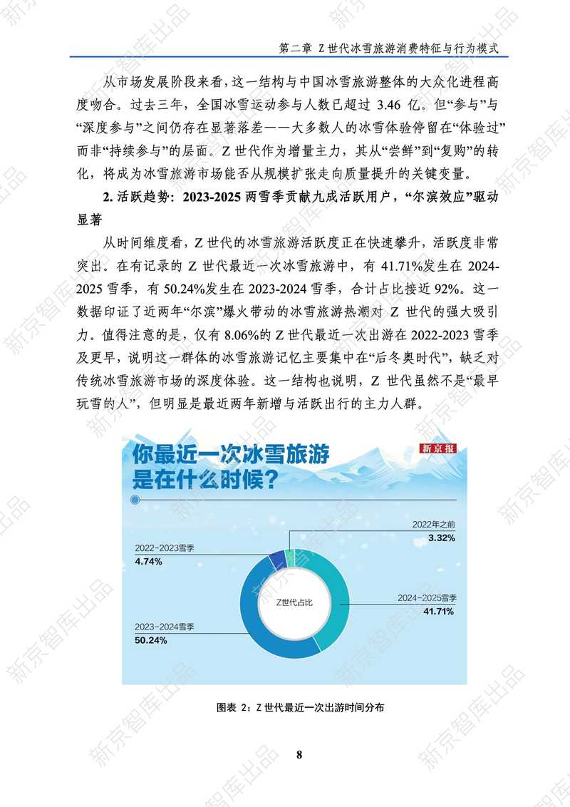 Z世代是冰雪旅游的“增量主力”,非Z世代是“存量核心”:近三年內首次體驗冰雪旅游的Z世代比例顯著高于非Z世代,Z世代正在成為市場擴容的關鍵驅動力。