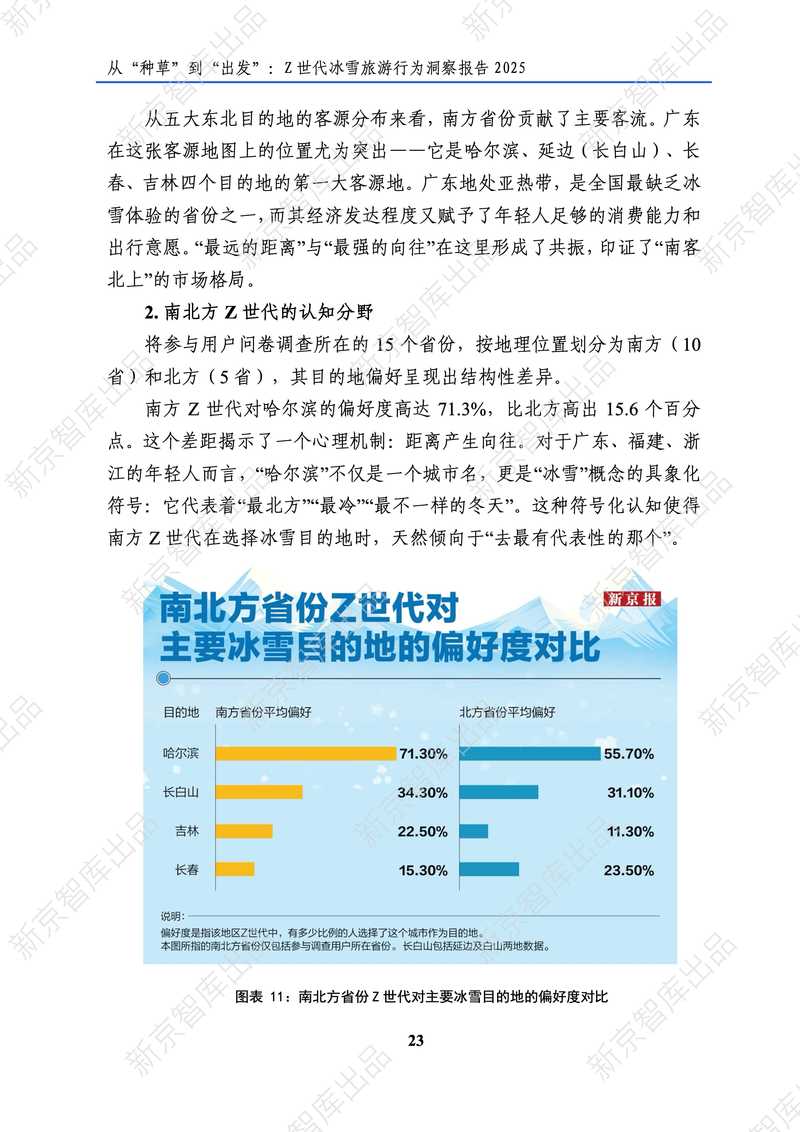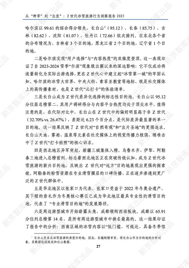 Z世代目的地偏好更加多元分散:除東北外,新疆阿勒泰等新興目的地在Z世代中的認知度和偏好度正在快速提升。