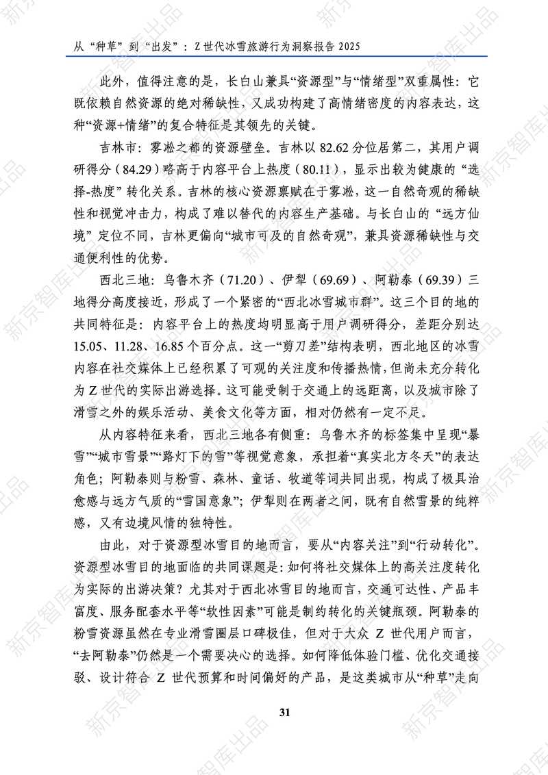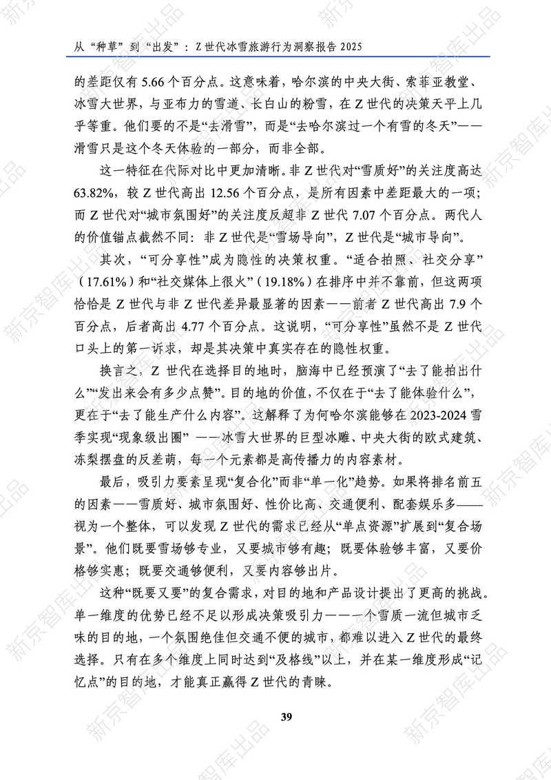 雪質、城市氛圍、性價比構成Z世代決策“三角”:三者共同決定了目的地在Z世代心中的吸引力排序。