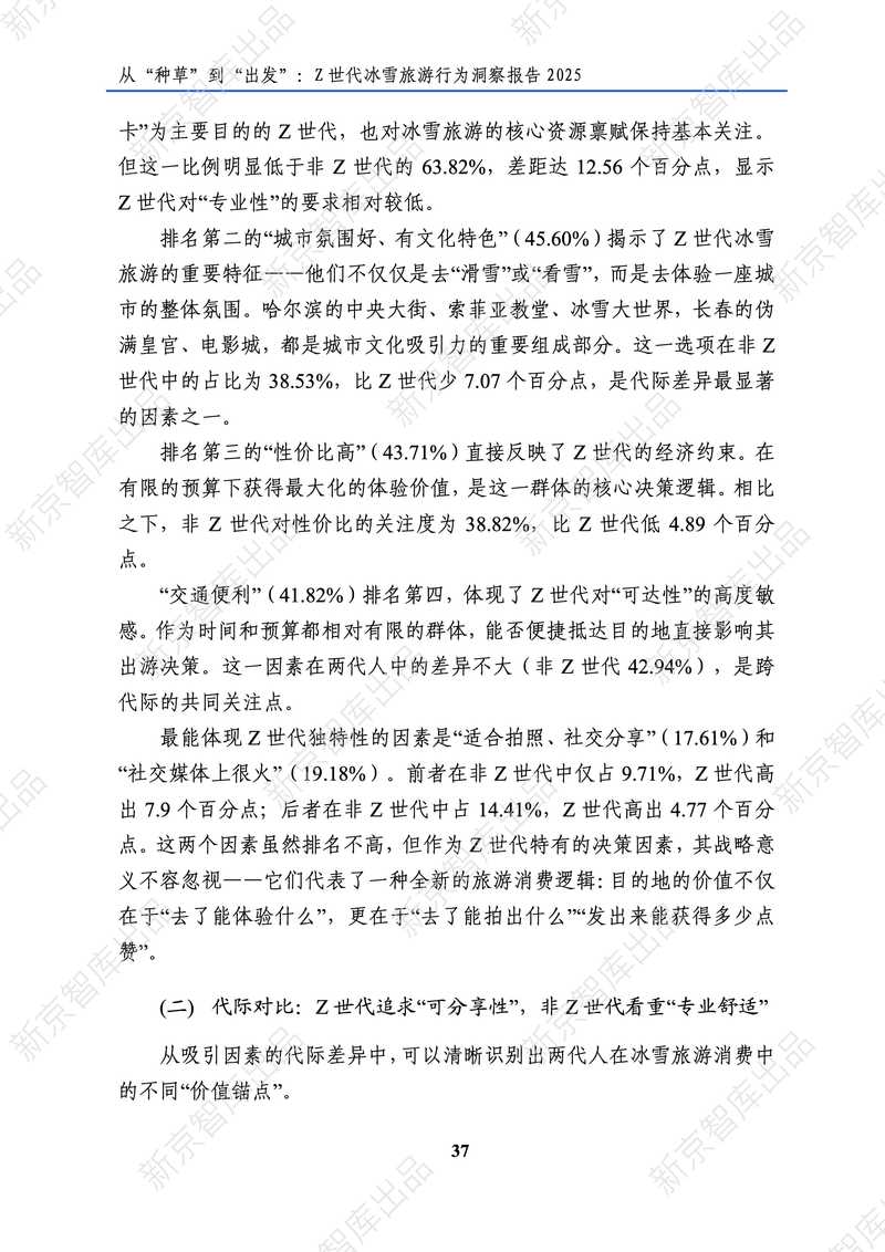 Z世代聚焦“可分享性”,非Z世代看重“專業(yè)性與舒適度”:這一代際差異貫穿目的地選擇、消費決策、體驗評價全過程。