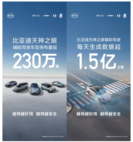 數(shù)據(jù)顯示,截至2025年11月底,比亞迪搭載“天神之眼”駕駛輔助系統(tǒng)的車型累計銷量已突破230萬輛,持續(xù)蟬聯(lián)中國輔助駕駛車型銷量及系統(tǒng)裝車量榜首。這標志著比亞迪推動的“全民智駕”戰(zhàn)略已取得顯著成效,智能駕駛正從高端配置加速向主流市場普及。