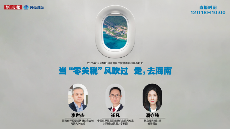 見證歷史時(shí)刻!12月18日海南全島正式“封關(guān)“。海南封關(guān)到底是什么?對(duì)普通人的生活有哪些影響?未來又有哪些新機(jī)遇?新京報(bào)貝殼財(cái)經(jīng)第一時(shí)間連線海南省開放型經(jīng)濟(jì)研究會(huì)會(huì)長、南開大學(xué)教授李世杰,中國世界貿(mào)易組織研究會(huì)首席專家、對(duì)外經(jīng)濟(jì)貿(mào)易大學(xué)教授崔凡拆解關(guān)鍵問題。