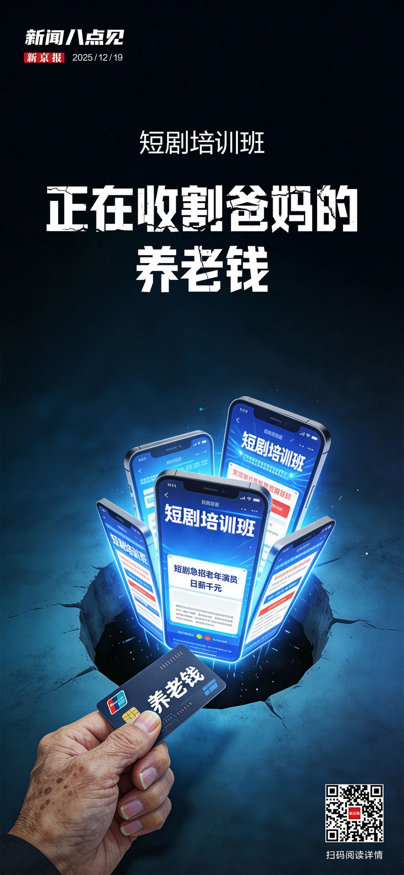 更多時候,老人們的憤怒像投入深潭的石子,泛起幾圈微弱的漣漪,沉下去,再無回響。不同的公司依舊每天組織著名稱各異的短劇表演培訓,而新的老人,依舊會循著短視頻里光鮮的廣告,走進下一間擁擠的教室。