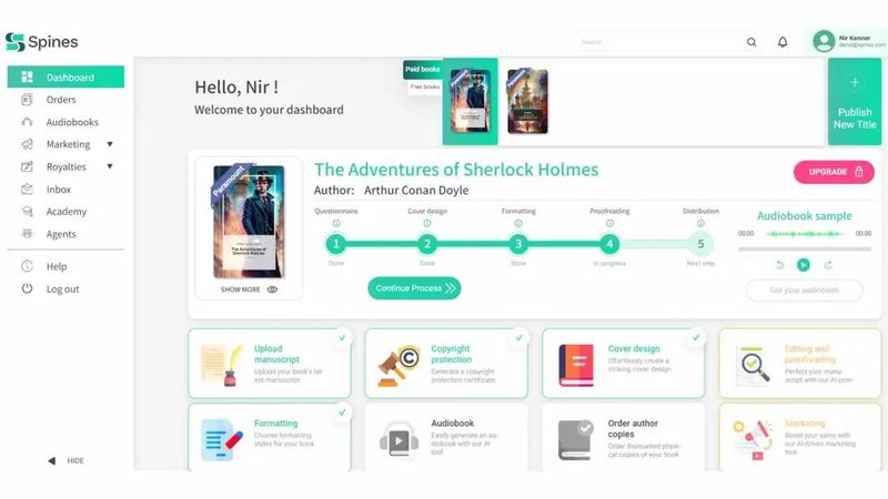 全球最大的出版巨頭企鵝蘭登書(shū)屋于去年4月在內(nèi)部推出了一款基于ChatGPT的出版工具。出版社在聲明中稱(chēng),這項(xiàng)工具將允許員工在日常工作中“安全地試驗(yàn)生成式AI”,以此來(lái)“簡(jiǎn)化流程、增強(qiáng)創(chuàng)造力,并提供數(shù)據(jù)洞察”。 “每個(gè)人都能成為出版人?!边@是世界上第一家由AI驅(qū)動(dòng)的自助出版平臺(tái)Spines在今年打出的口號(hào)。這家成立于2021年的初創(chuàng)公司利用AI自動(dòng)化處理圖書(shū)出版流程中的多個(gè)環(huán)節(jié),包括編輯、校對(duì)、封面設(shè)計(jì)、營(yíng)銷(xiāo)以及覆蓋100多家零售商的發(fā)行。